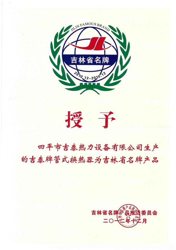 四平市吉泰熱力設(shè)備有限公司始建于1996年,坐落在全國衛(wèi)生園林城市,擁有“中國換熱器基地”美譽(yù)的四平市,公司擁有雄厚的技術(shù)力量和人才優(yōu)勢,國內(nèi)生產(chǎn)設(shè)備,完善的檢測手段,是吉林省集設(shè)計、開發(fā)、生產(chǎn)經(jīng)營于一體的換熱設(shè)備生產(chǎn)企業(yè)。